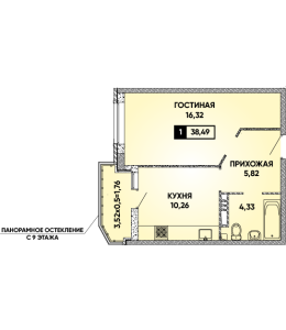 1-комнатная 38,49 м2