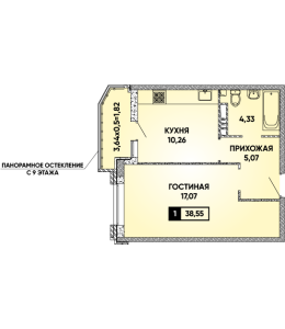 1-комнатная 38,55 м2