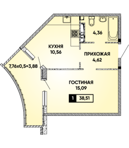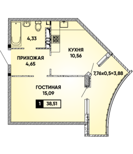 1-комнатная 38,51 м2