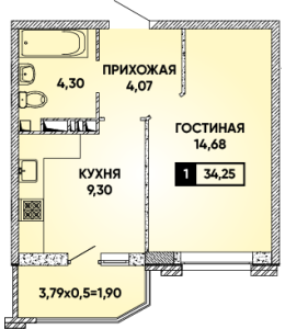 1-комнатная 34,25 м2