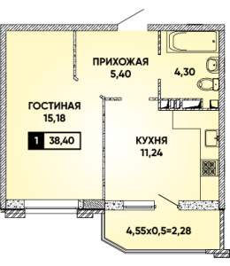 1-комнатная квартира 38,40 м2