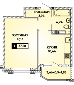 1-комнатная 37,58 м2