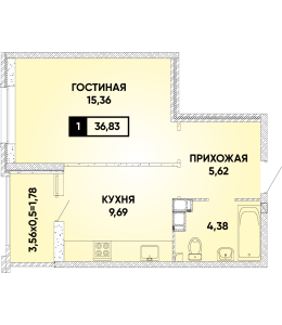 1-комнатная 36,83 м2