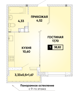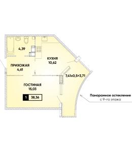 1-комнатная 38,82 м2