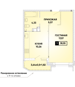 1-комнатная 38,55 м2