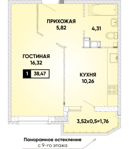 1-комнатная 38,47 м2