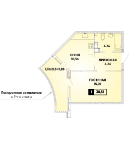 1-комнатная 38,51 м2
