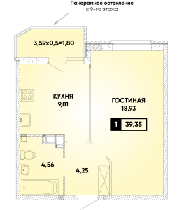 1-комнатная 39,35 м2